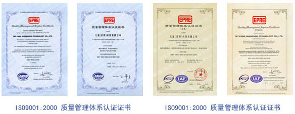 2005年10月27日,榮獲賽寶認證中心頒發的ISO9001:2000CNAB和ANAB的雙重證書